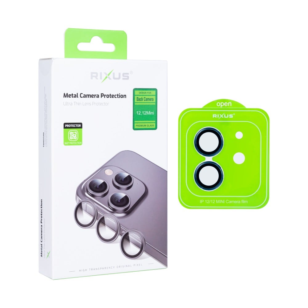 Rixus Metal Shield Camera Tempered Glass For Apple iPhone 12, 12 Mini Blue